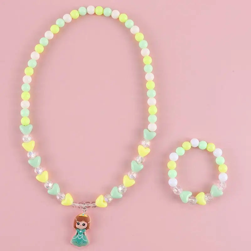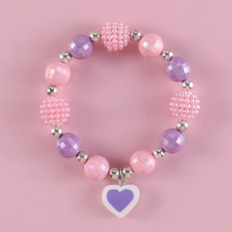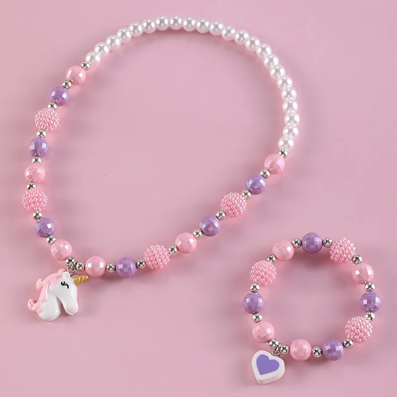 This adorable Makersland necklace and bracelet set features sweet pink and purple beads with a charming pendant, perfect for little girls. Designed for fun and creativity, it's ideal for dress-up or everyday play. Lightweight and comfortable, it’s a delightful accessory for any outfit. A perfect gift for birthdays or DIY-loving kids.